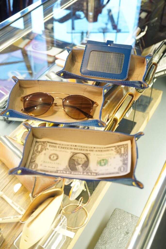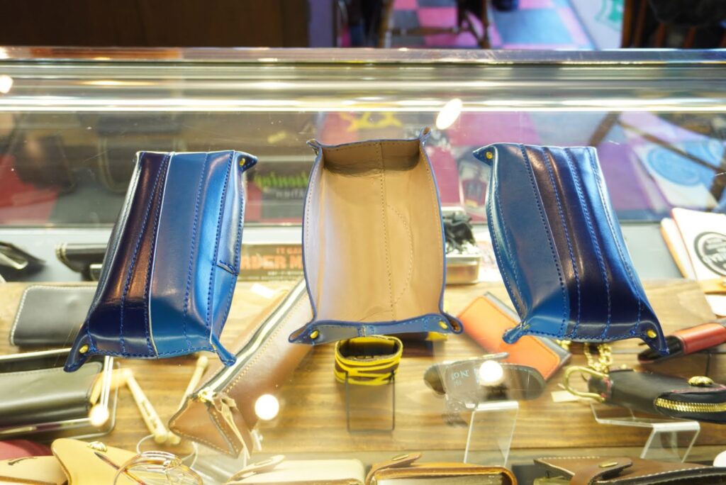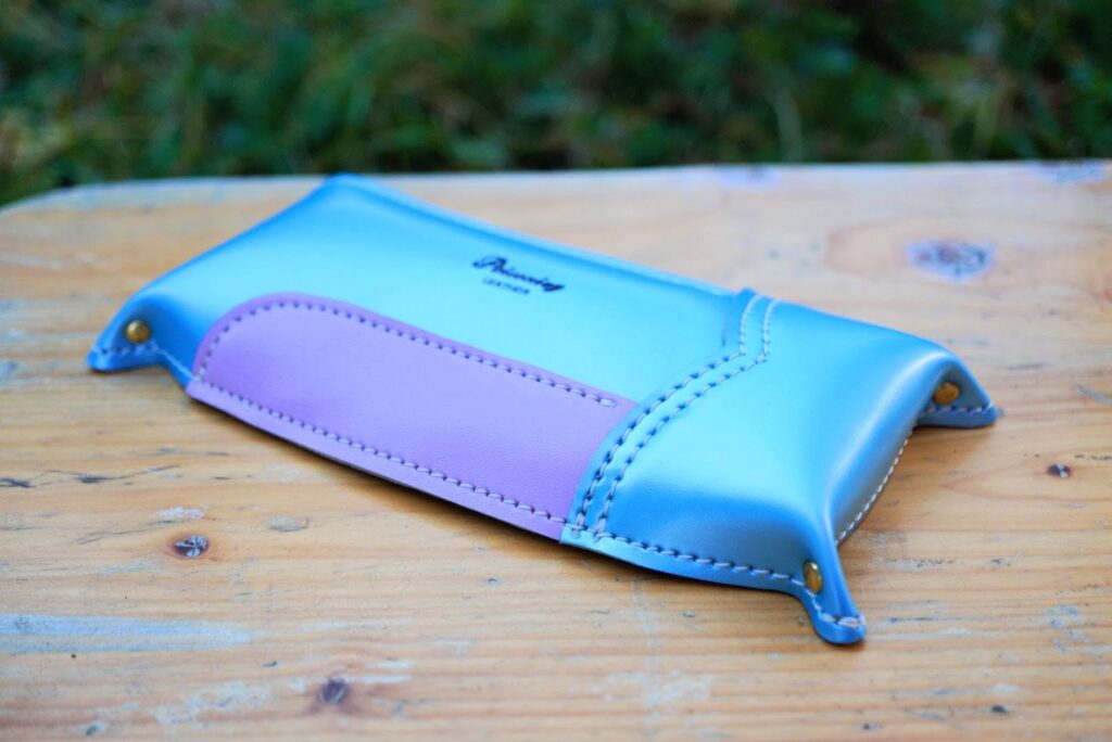 funase2022 Products42 トレー 作品例 メガネやお札が入る大きさのトレーです。※大きさは他に同時にリメイクする物により多少変わります。 ご兄弟のランドセルをMIXして製作することも可能です。(2色カラーなど)料金:5,500円~